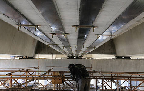 The prestressed CFRP laminate is a kind of active reinforcement technology applied to bridge, long span beam and other flexural members. It does not increase the weight of the original component and can be strengthened without unloading, so it is favored.